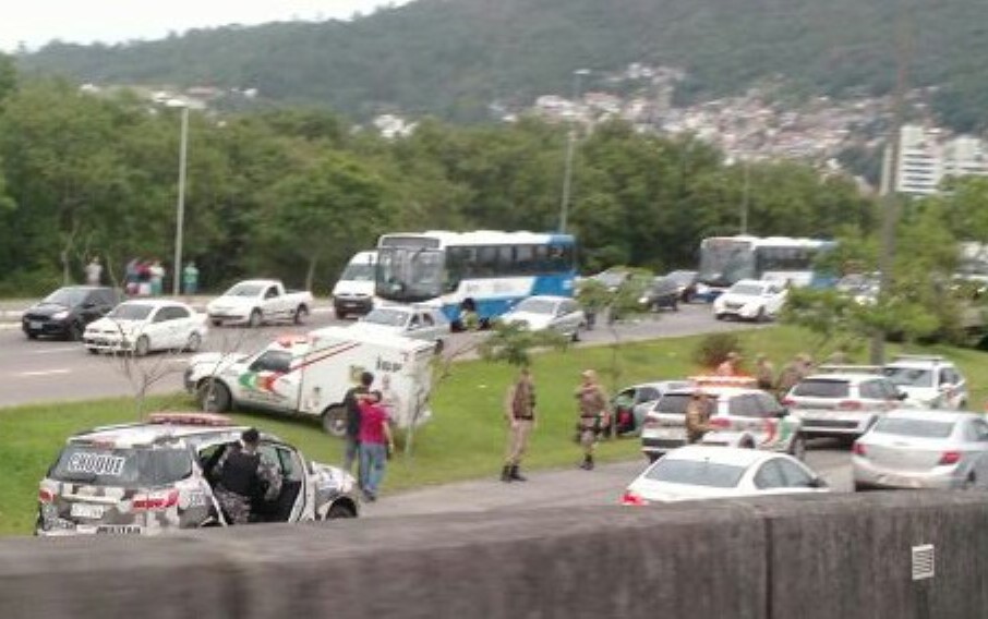 O carro foi perseguido por viaturas até a avenida da Saudade. O trânsito foi fechado no elevado do Itacorubi. No local, por volta das 6h, houve uma nova troca de tiros, desta vez entre os suspeitos e policiais.