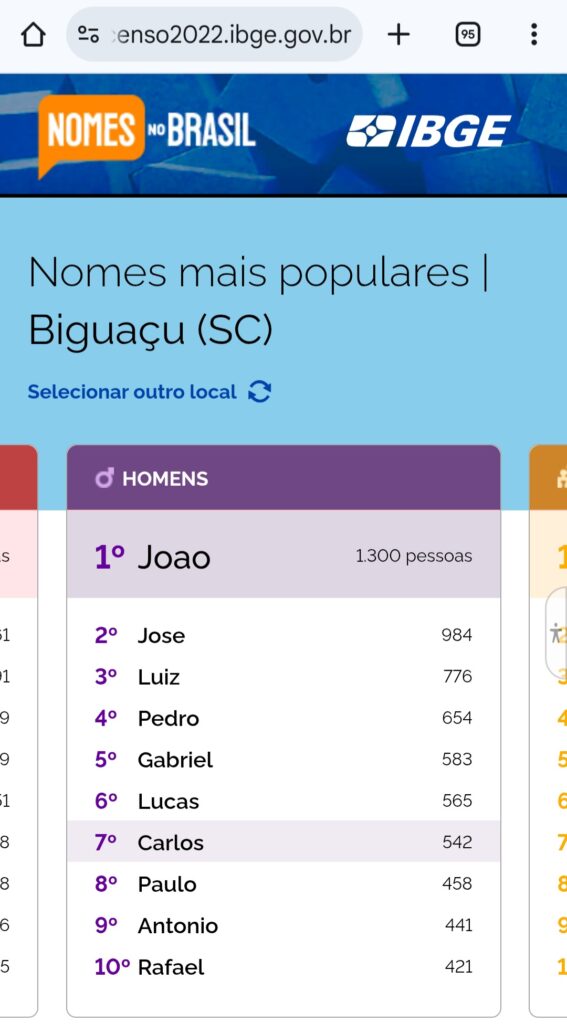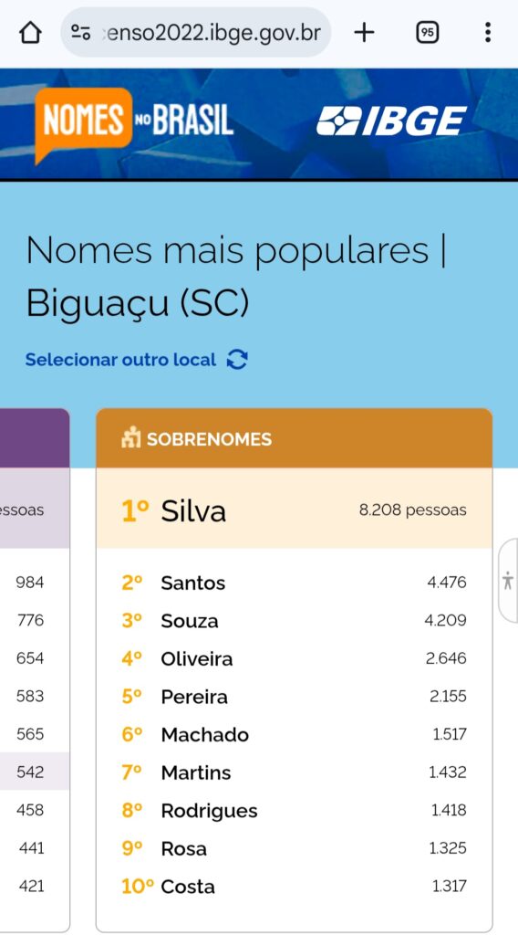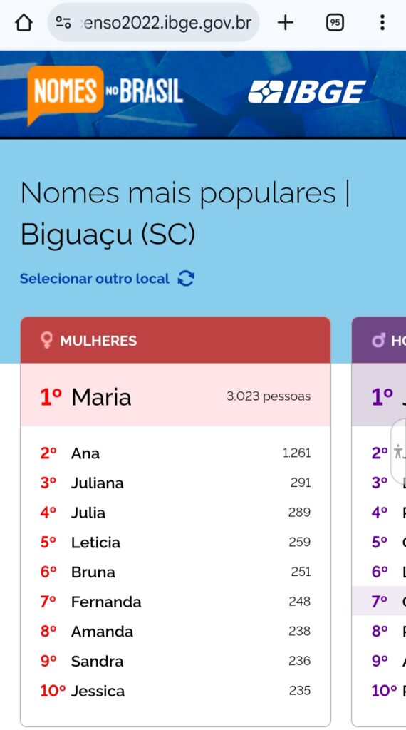 Veja abaixo o ranking com os 10 principais nomes e sobrenomes dos biguaçuenses.