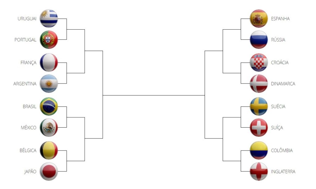 Os oito confrontos das oitavas de final estão definidos após o encerramento de todas as partidas da fase de grupos, que terminou na tarde desta quinta-feira, com a vitória da Bélgica sobre a Inglaterra, por 1 a 0.