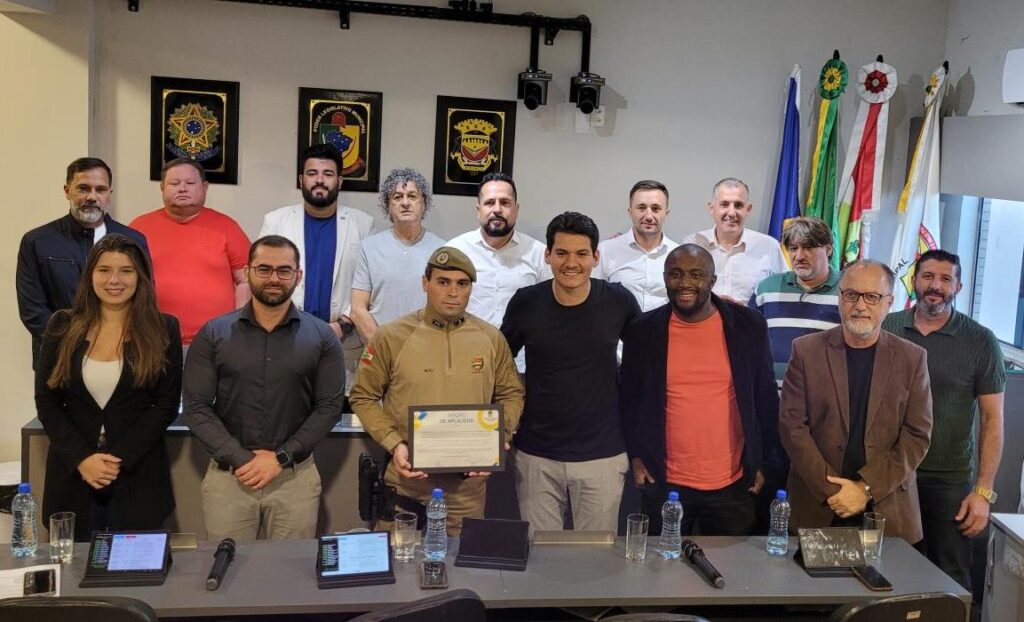 A Câmara Municipal de Biguaçu fez a entrega oficial da Moção de Aplausos nº 0008/2025, na terça-feira (29). A homenagem, de autoria do vereador André Leal, tem por objetivo reconhecer e parabenizar a bravura do cabo da Polícia Militar de Santa Catarina, Francisco Paulo Neto.