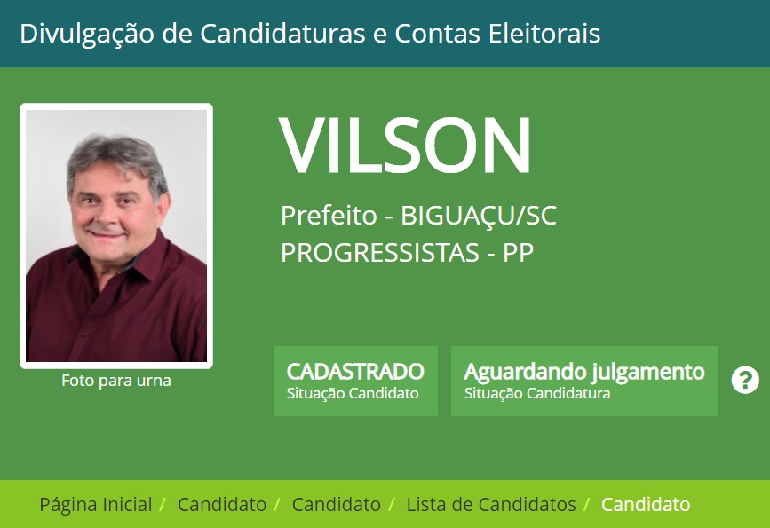 O vice-prefeito Vilson Norberto Alves (PP) pediu registro de candidatura a prefeito no Cartório Eleitoral de Biguaçu e apresentou como candidato a vice o vereador Angelo Ramos Vieira (PSD). Os dois partidos formam a coligação “Biguaçu em Primeiro Lugar”. Alves foi vereador por dois mandatos – ocasião em que também presidiu a Câmara Municipal – e depois elegeu-se vice-prefeito em 2016. Vieira está na sua segunda legislatura e também presidiu o Poder Legislativo. Além disso, Angelo foi secretário de Saúde do município.